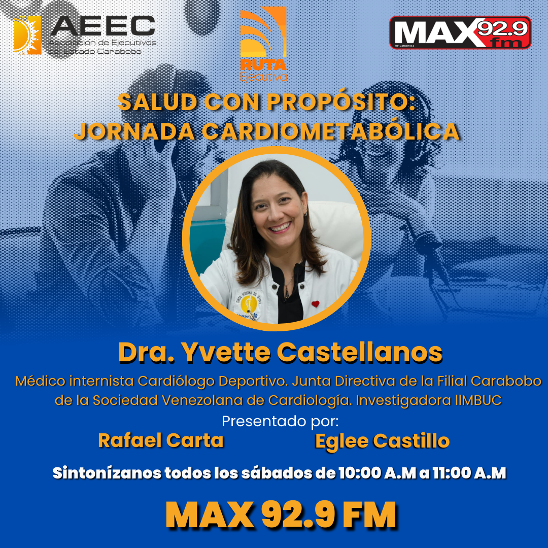 El programa de radio de la Asociación de Ejecutivos del Estado Carabobo sobre “Salud con Propósito: Jornada Cardiometabólica” con la Dra. Yvette Castellanos fue parte de una iniciativa enmarcada en el Día Mundial del Corazón, celebrada el 23 de septiembre.