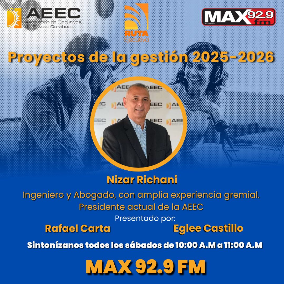 El programa radial “Proyectos de la gestión 2025-2026” de la Asociación de Ejecutivos del Estado Carabobo tuvo como invitado al presidente electo Nizar Richani, quien presentó las líneas estratégicas de su gestión, enfocadas en formación ética, expansión institucional y fortalecimiento del liderazgo empresarial.